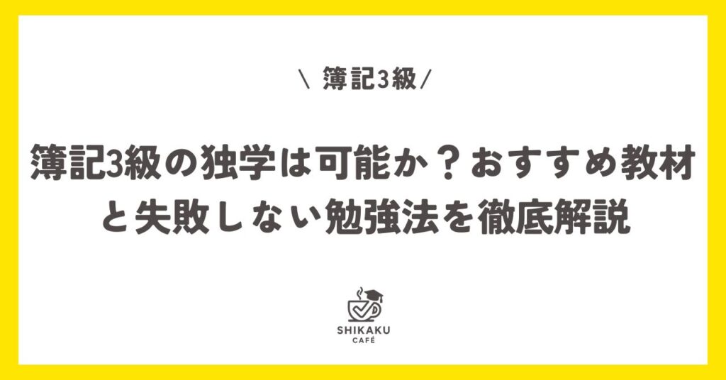 簿記3級は、初心者でも独学で十分合格できる資格です。